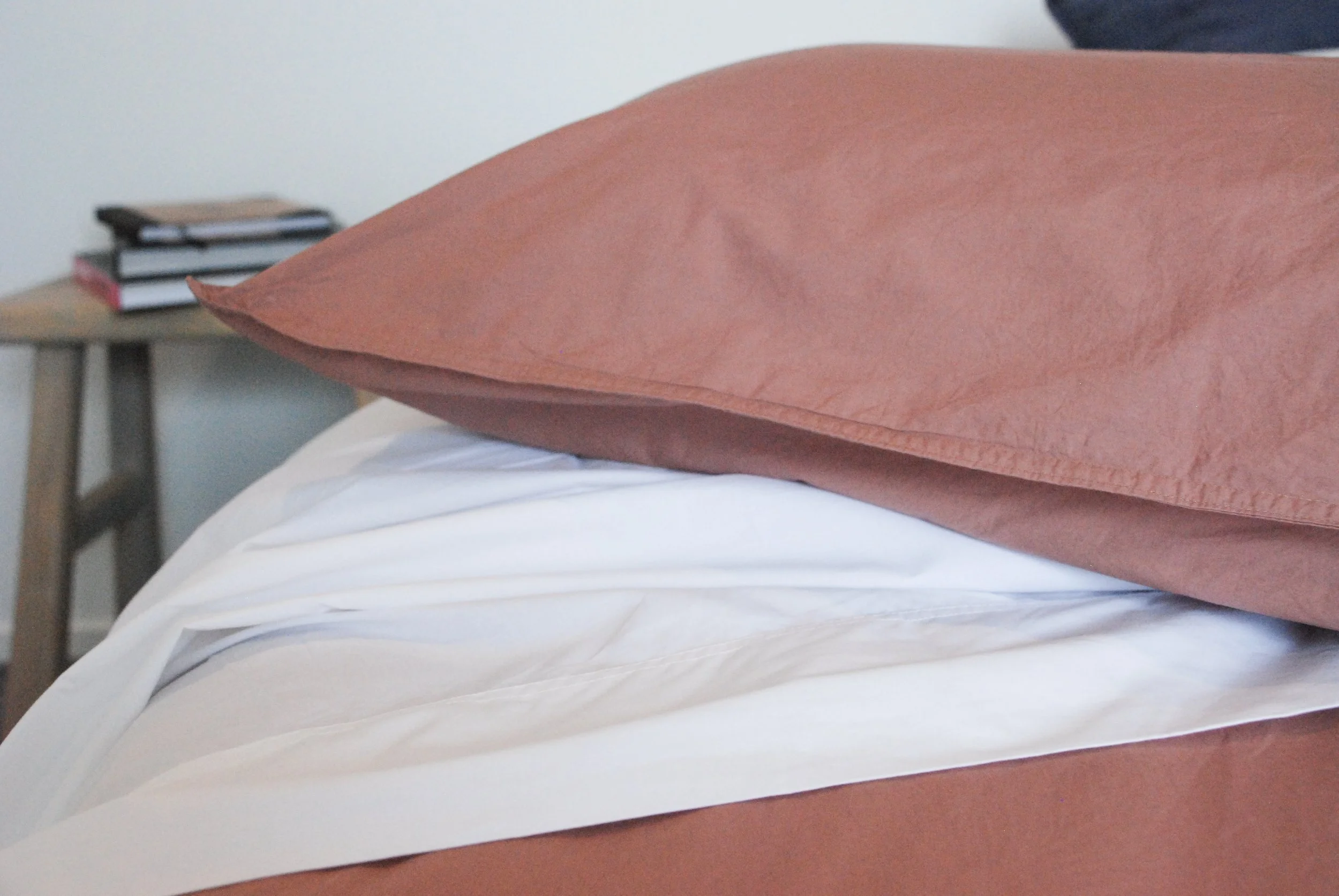 Striking and inviting, our cinnamon sheet sets add modern beauty to your room. Make a statement pairing them with the matching duvet cover or keep it fresh with white or slate. The Essentials Collection has been designed to bring luxury to your bedroom every day. Crafted from Organic Cotton, in a percale weave, our cotton essentials bedding products are soft, cool and breathable. Kind on the planet and your skin, the Essentials Sheet sets are perfect for all beds in your home.